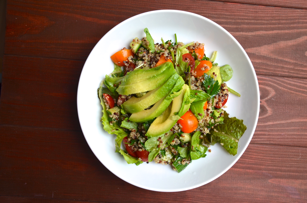 Auch bei diesem Rezept sind deiner Kreativität keine Grenzen gesetzt: Wie wärs mit Schafskäse oder Hähnchenbrust oder statt frischem Gemüse mit angebratenen Zucchini und Auberginen oder zusätzlich mit Sonnenblumen- oder Kürbiskernen oder frischer Petersilie, Minze oder mit Koriander? Alles möglich, solange es dir schmeckt! Vielleicht so:Quinoasalat