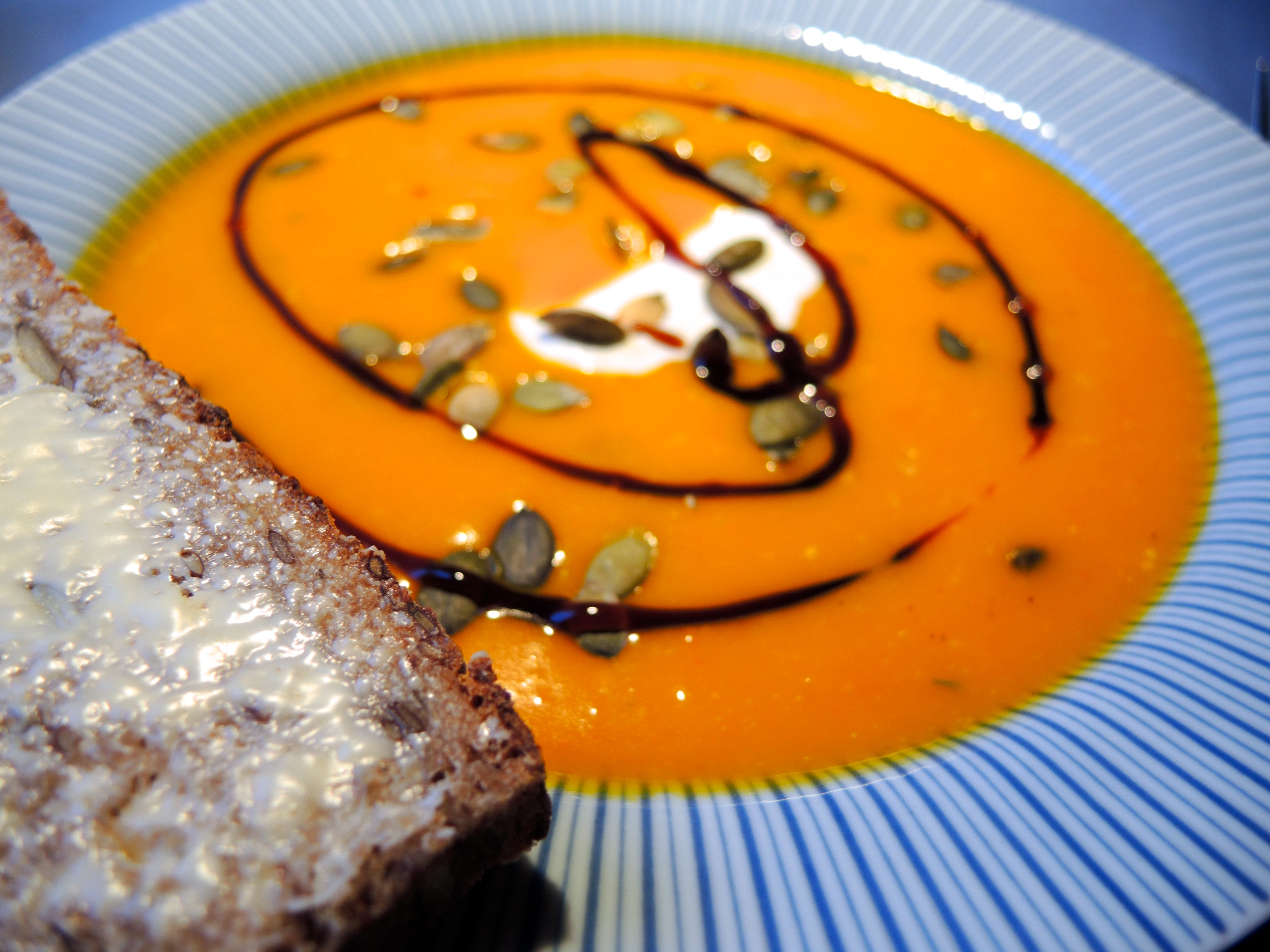 Es gibt unzählige Rezepte zur Kürbissuppe! Meine Suppe ist mir gut gelungen und deshalb will ich sie dir nicht vorenthalten! Ich habe sie zu meinem Geburtstag gekocht, für 10 Personen… Das Kürbisschneiden war der Horror, das ist für viele Leute echt anstrengend, aber es hat sich mal wieder gelohnt.